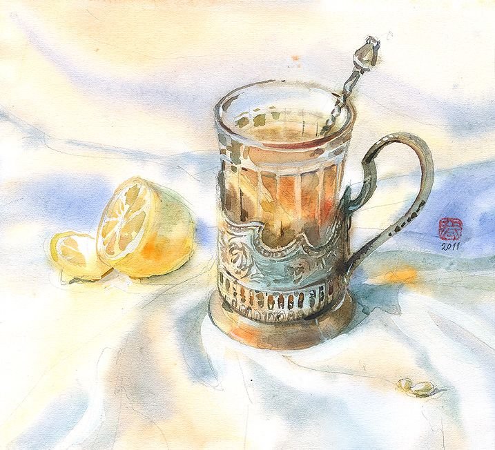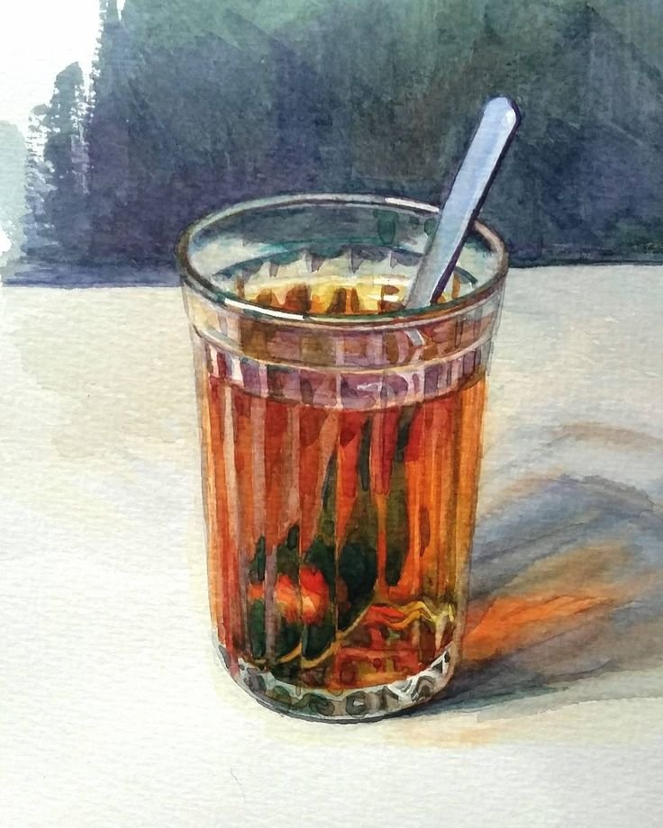 ![Чай в стакане живопись]()