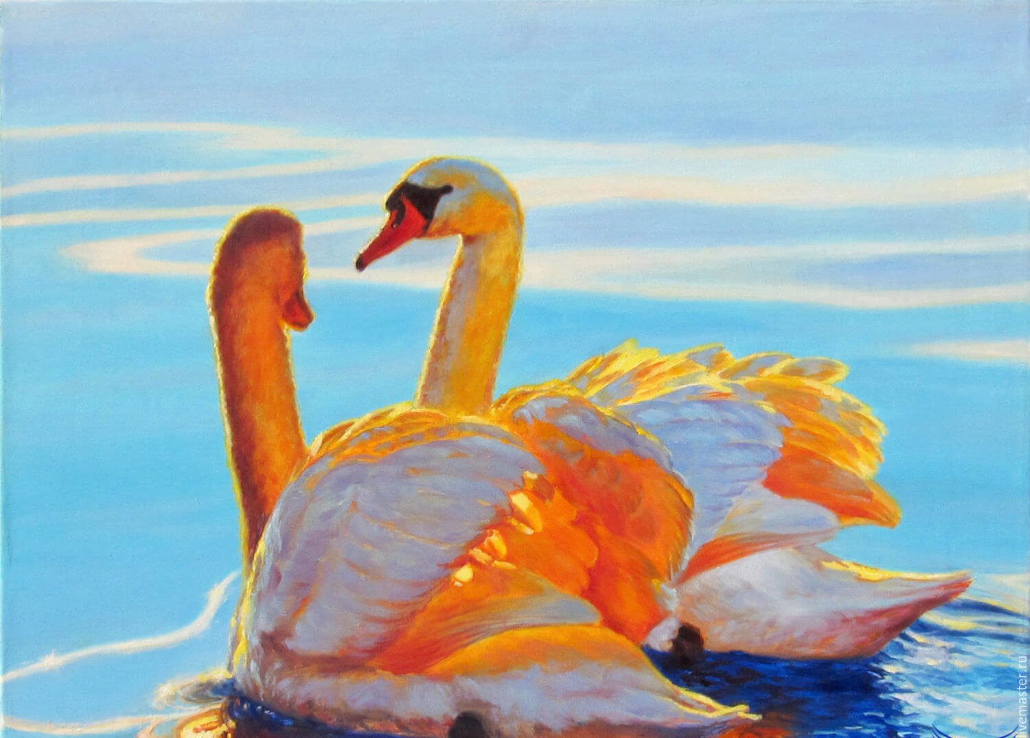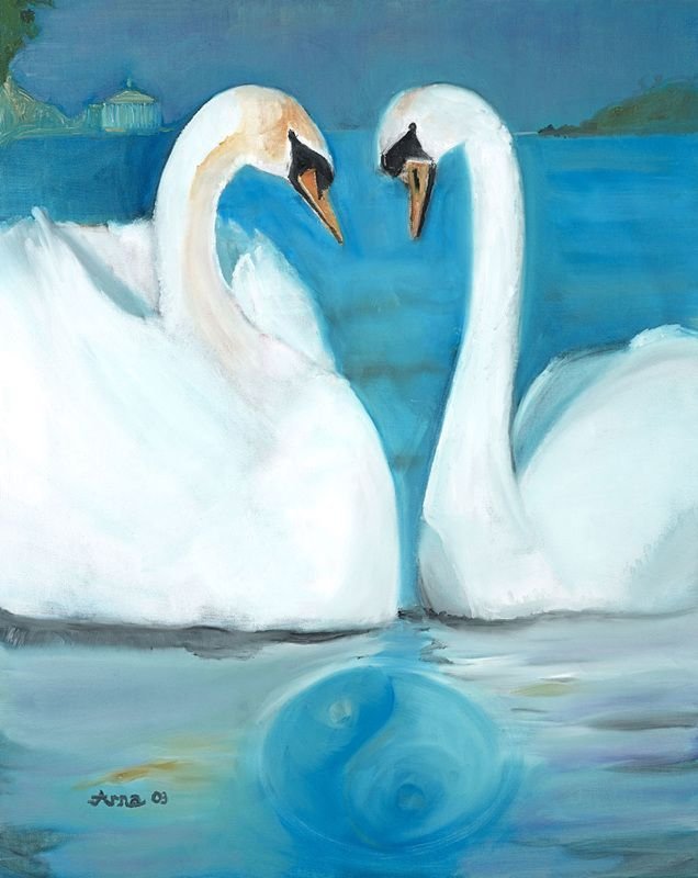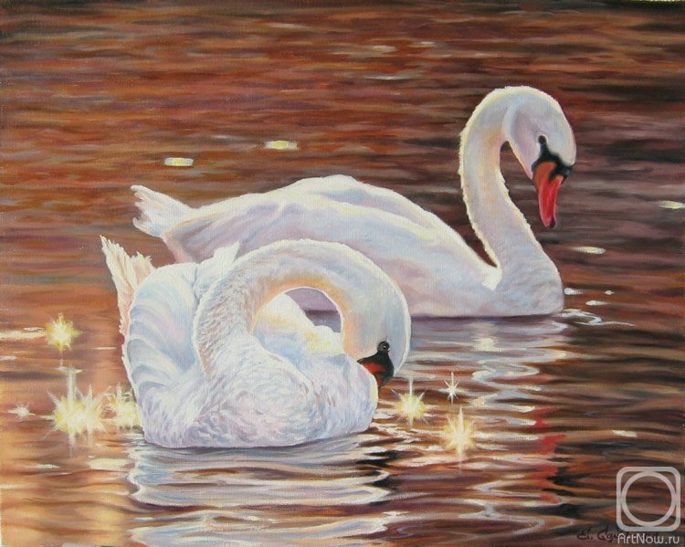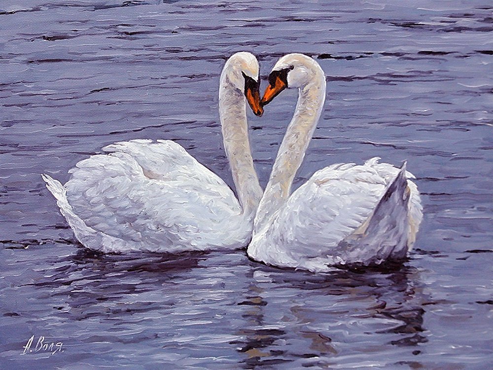 ![Пара лебедей живопись]()