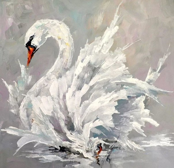 ![Лебеди масляными красками]()