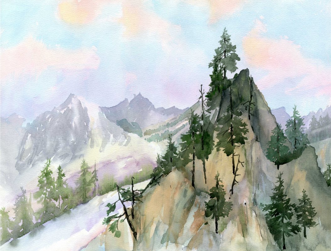 Горы акварелью