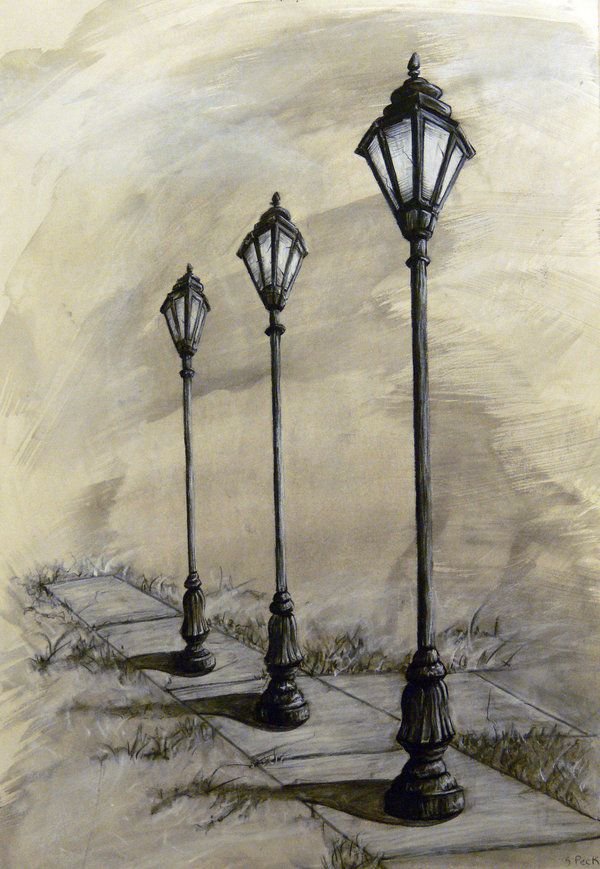 ![Уличный фонарь набросок]()