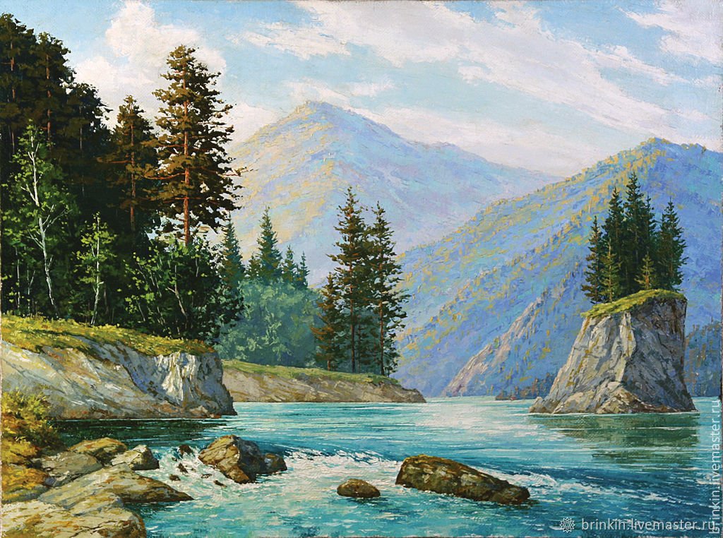 ![Горная река картины пастозный]()