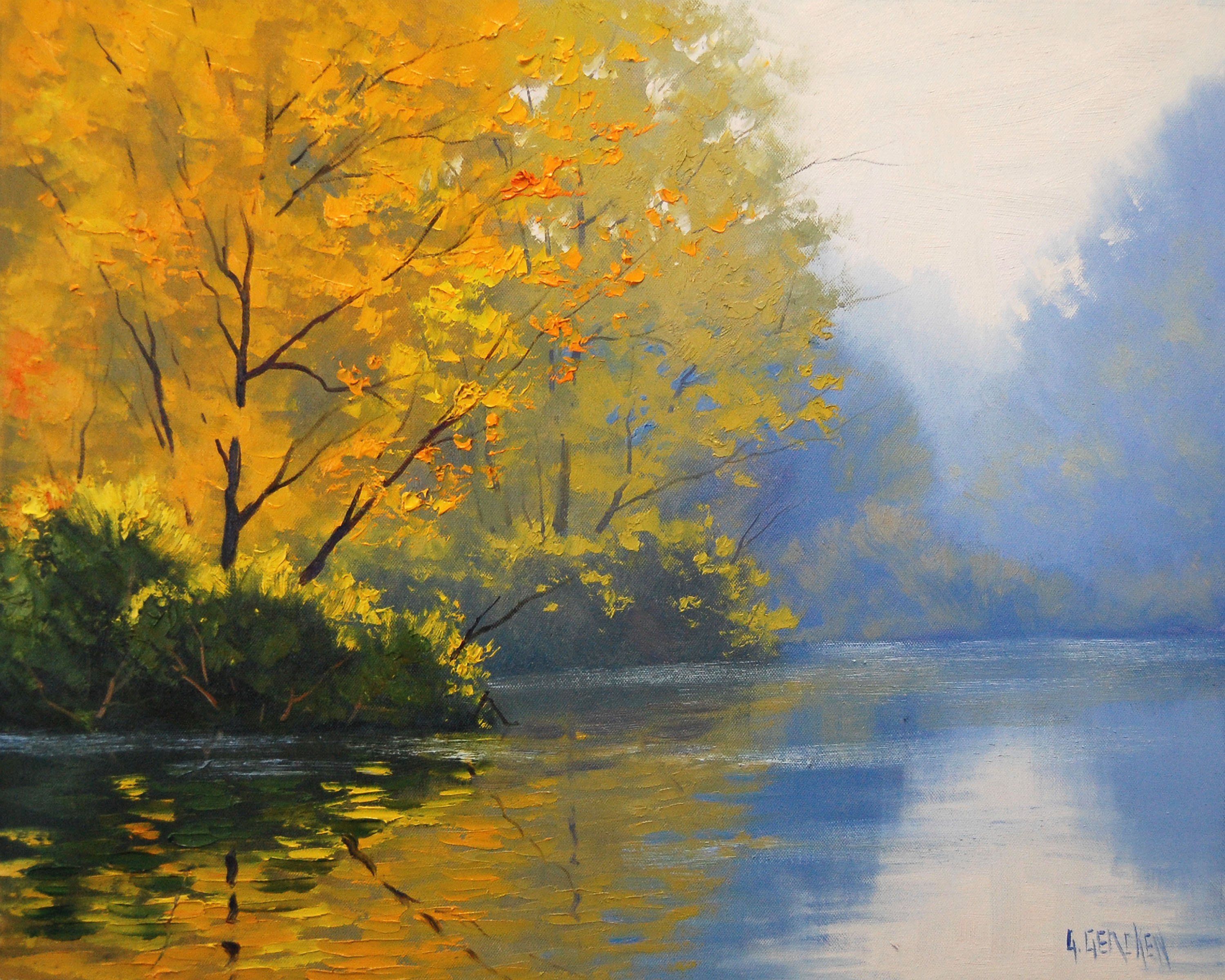 Осень на реке в живописи