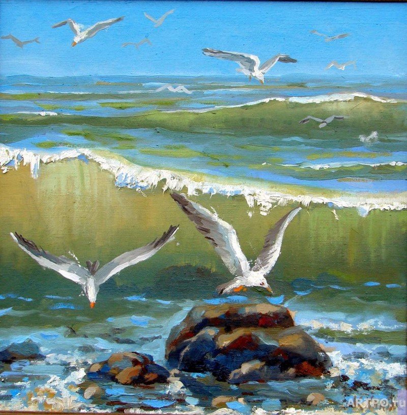 ![Море Чайки живопись]()