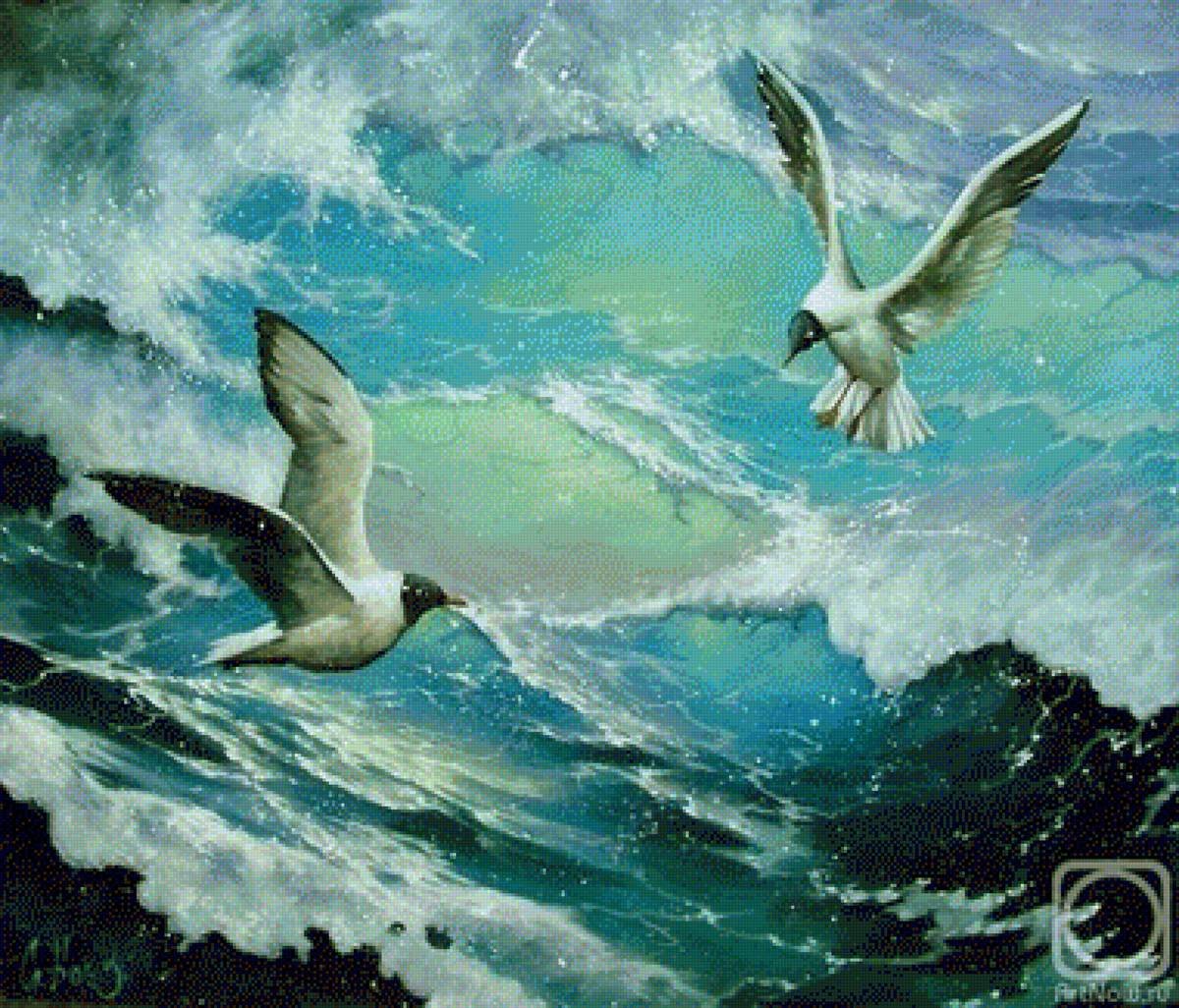 ![Морские птицы живопись]()