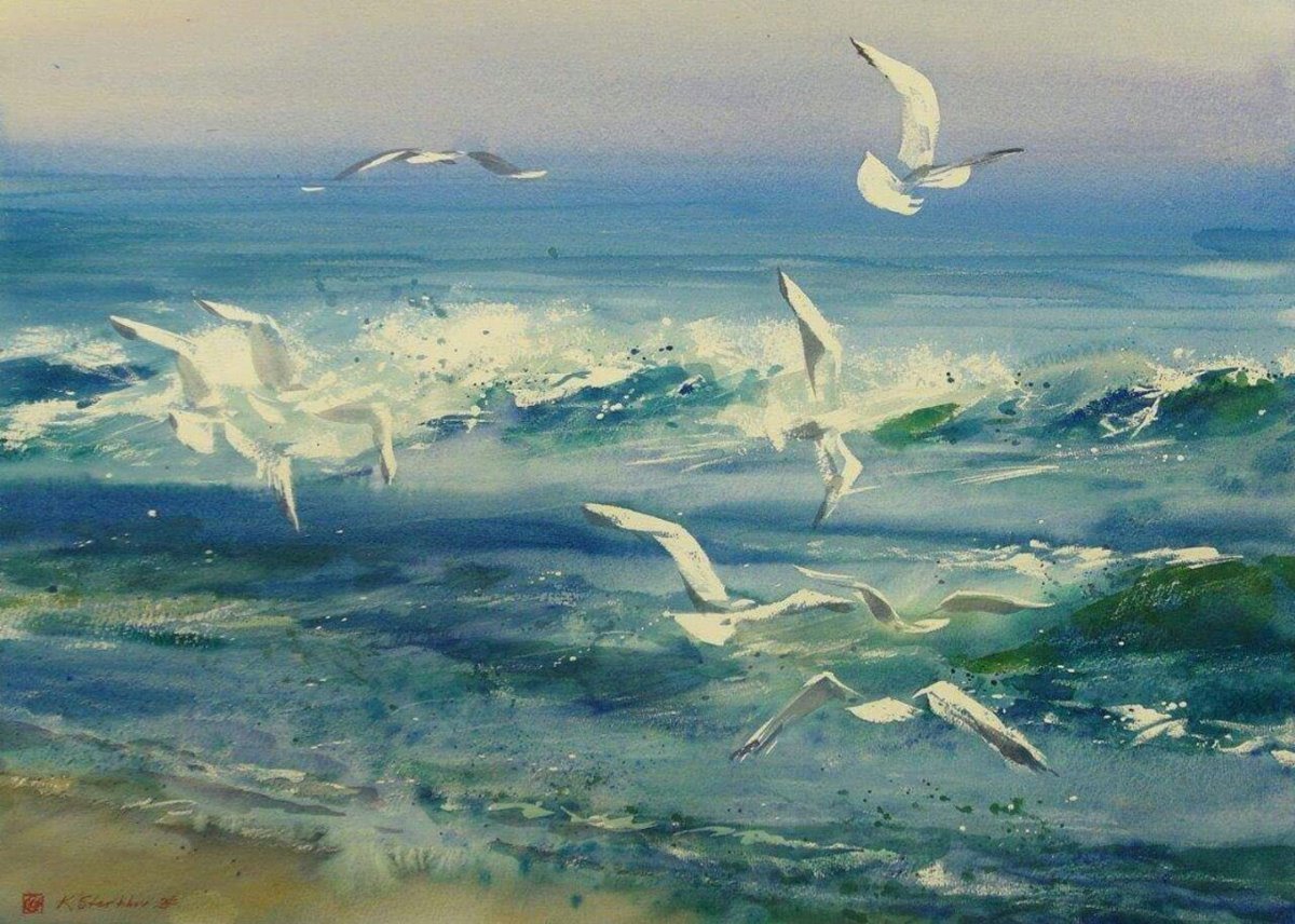 ![Ричард Торн акварель море Чайки]()