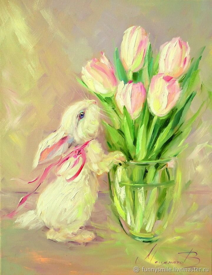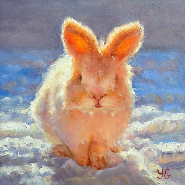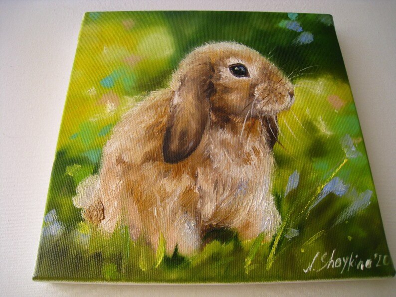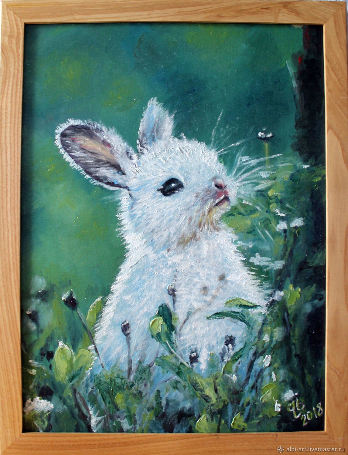 Представьте себе нежный и милый рисунок зайчика, созданный масляными красками. Великолепные оттенки бежевого и серого придают этому произведению искренность и теплоту. Зайчик изображен в позе спокойствия и беззаботности, словно находится в своем естественной среде – в лесу или на поляне. Благодаря умело выполненным штрихам и деталям, рисунок оживает перед глазами зрителя, заставляя почувствовать его нежность и чарующую энергию. Это идеальное произведение искусства для детской комнаты или любого интерьера, которому нужна порция радости и позитивных эмоций.