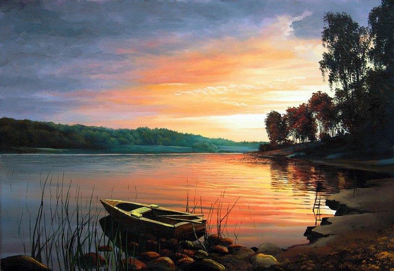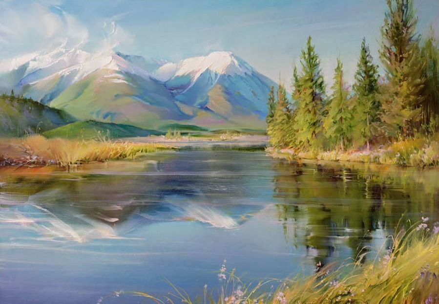 Озеро, изображенное на рисунке маслом, представляет собой захватывающий и впечатляющий пейзаж. Этот глубокий и мистический образ природы передает красоту и спокойствие, которые свойственны озерам. Вода на рисунке отражает яркое небо и зеленые деревья, создавая прекрасное симметричное зеркало. Ощущение гармонии и покоя, вызываемое этим произведением искусства, позволяет почувствовать себя погруженным в мир природы и насладиться ее умиротворяющим влиянием. Все детали и оттенки масляной краски на рисунке делают его живым и реалистичным, заставляя зрителя полностью погрузиться в эту красочную картину озера.