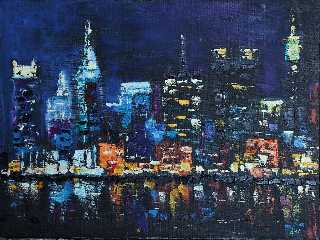 ![Нью Йорк живопись маслом ночной]()