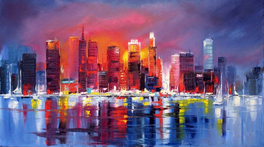 ![Ночной город маслом]()