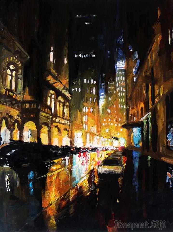 Нью Йорк живопись маслом ночной