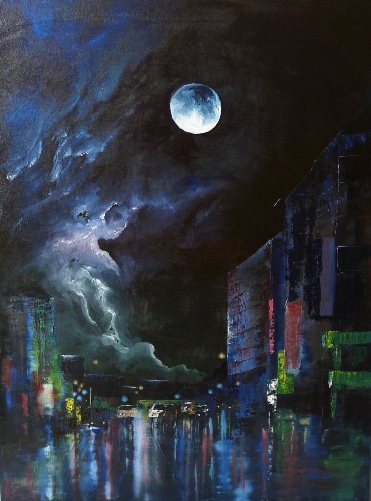 Ночной город маслом