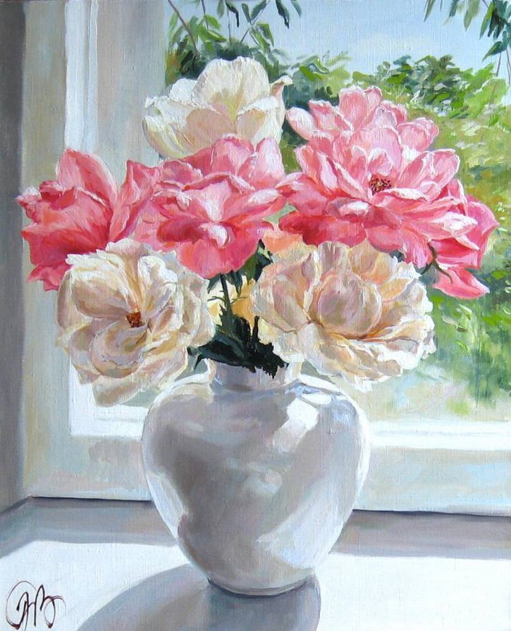 ![Ваза с цветами маслом]()