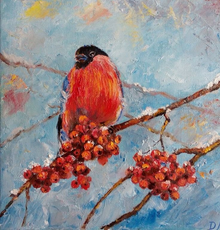 снегирь на ветке рисунок маслом для срисовки