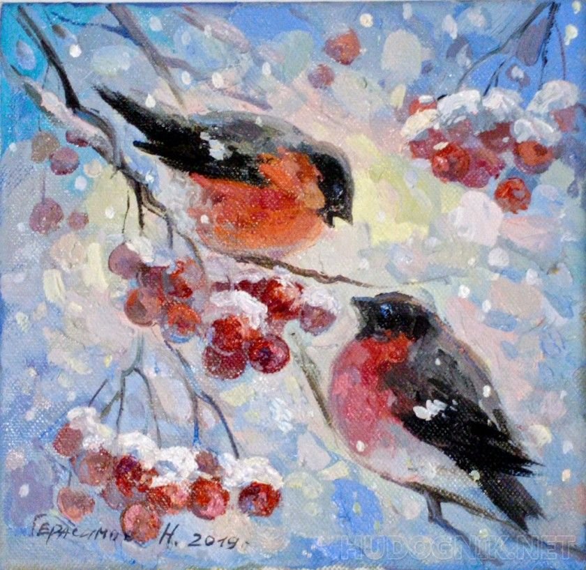 Птицы зимой живопись