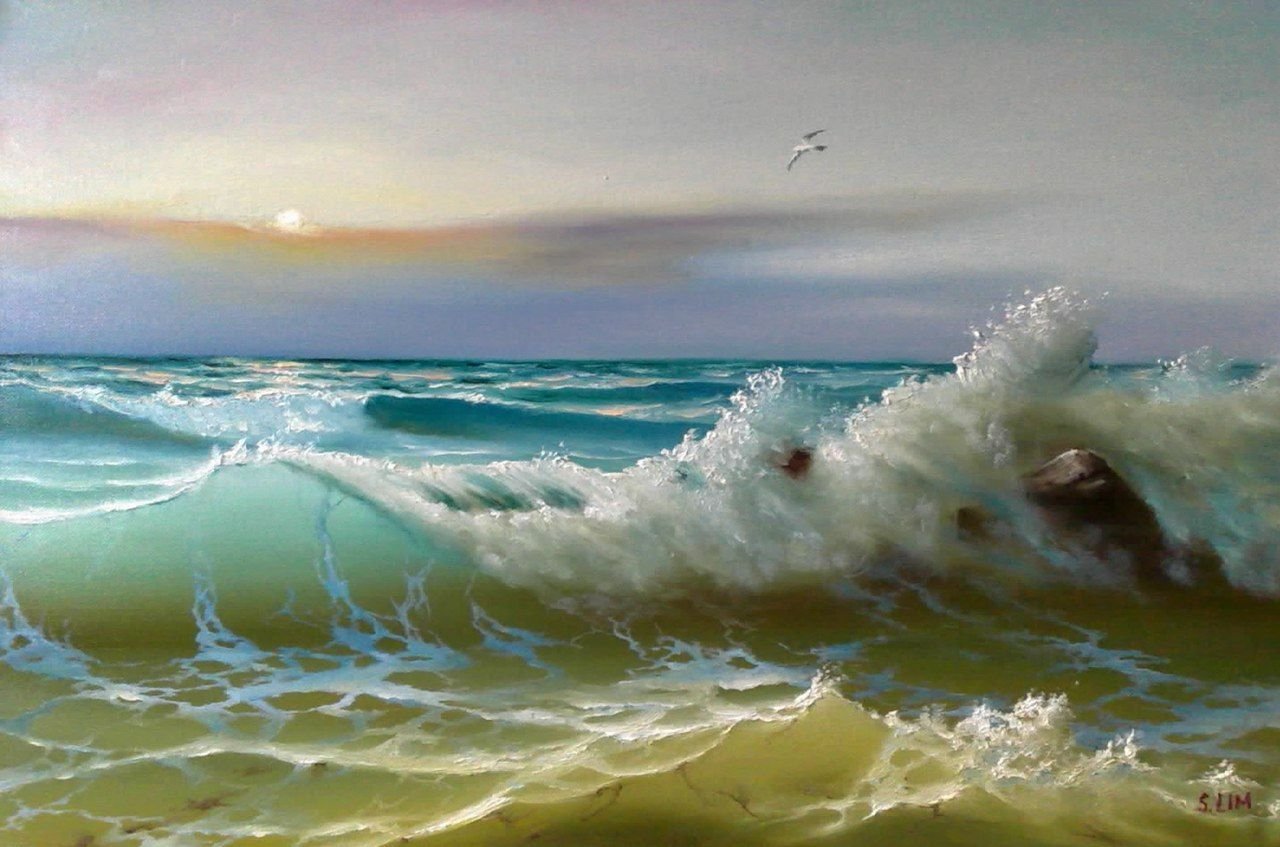 ![Море волна живопись]()