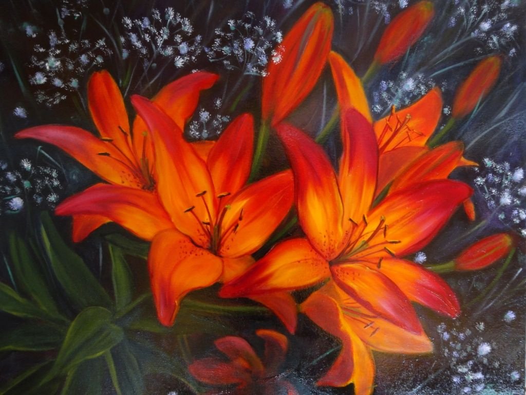 Рисунок маслом с изображением лилии – это потрясающий способ передать красоту и элегантность этого цветка. Масляные краски позволяют создавать яркие и насыщенные оттенки, которые так хорошо воспроизводят нежные лепестки лилии. Что касается самого рисунка, то масляные штрихи придают ему особую глубину и объем, создавая ощущение реальности. Благодаря масляной технике можно передать даже мельчайшие детали лилии, отражая ее изящество и изысканность. Такой рисунок станет прекрасным украшением интерьера и подарком для любителей искусства и природы.