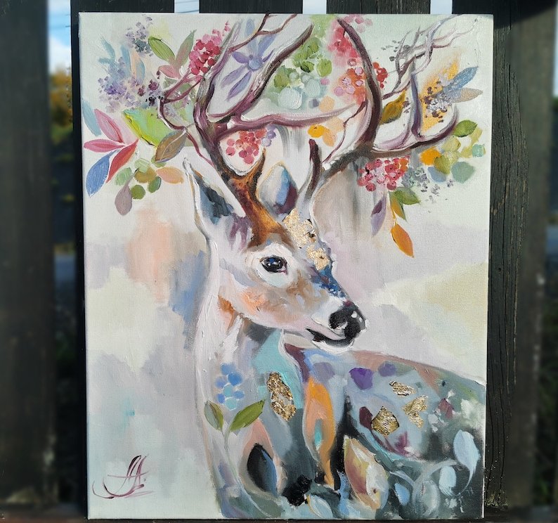 ![Олень картина маслом]()