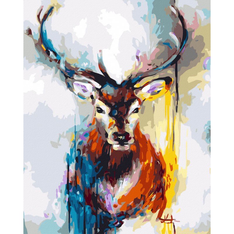 Олень красками