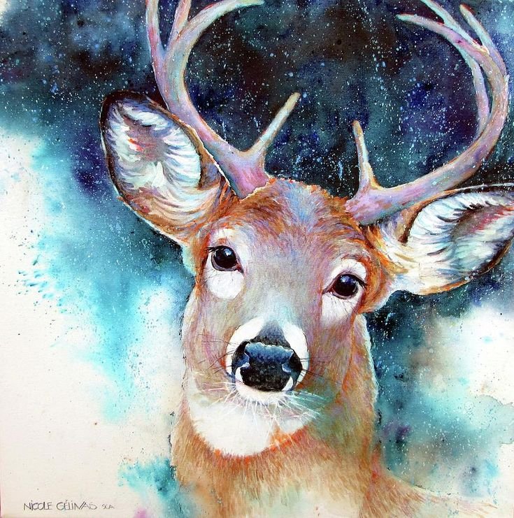 ![Олень живопись]()
