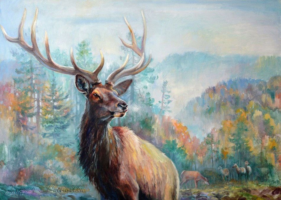![Олень живопись маслом]()