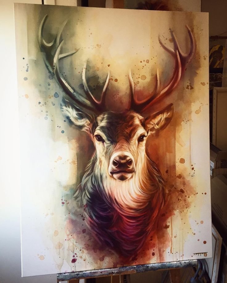 ![Олень живопись акрил]()
