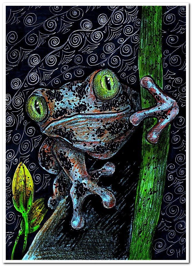 Вашему вниманию представляется уникальный рисунок маслом, изображающий прекрасную лягушку. Это произведение искусства наполнено живостью и неповторимым очарованием природы. Используя технику масляных красок, художник передал каждую деталь с особой тщательностью и реалистичностью, создавая ощущение настоящего присутствия. Зеленый оттенок тела лягушки ярко контрастирует с окружающими цветами, делая ее образ еще более притягательным и выразительным. Рисунок маслом с лягушкой станет прекрасным украшением вашего интерьера или подарком для любителей животного мира и искусства.