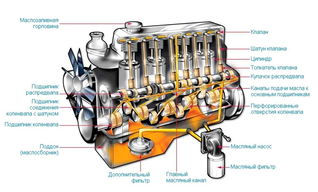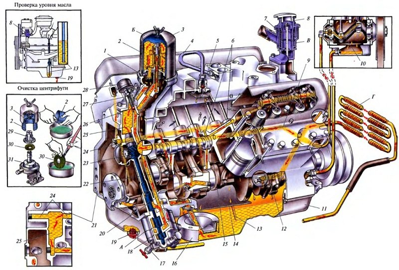 ![Система смазки дизельного ДВС]()