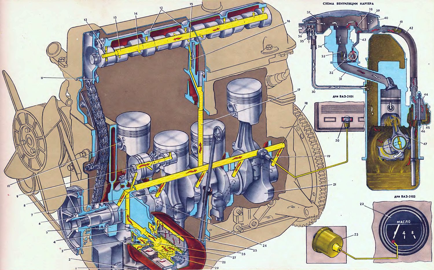 ![Система смазки двигателя ВАЗ 2101]()