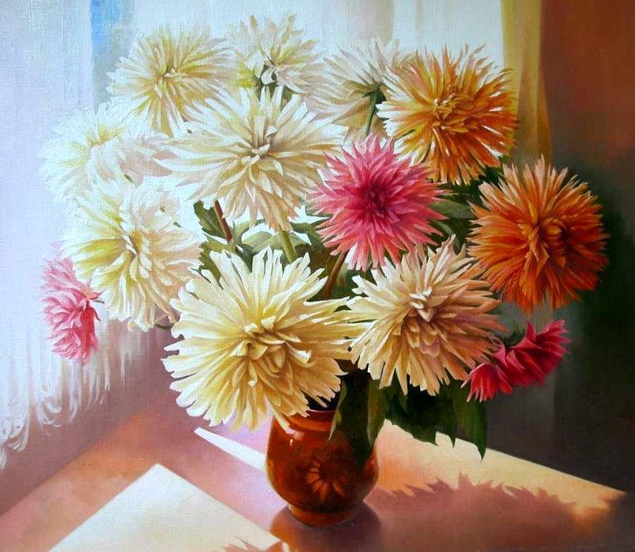 Очаровательные георгины, изображенные на рисунке маслом, обладают неповторимым очарованием и яркостью. Этот цветок, известный своей красотой и грацией, прекрасно передан на холсте благодаря мастерству художника. Масляные краски позволяют создать глубокие оттенки и объемы, придающие рисунку особую выразительность. Нежная палитра и детализация каждого лепестка делают эту картину настоящим произведением искусства. Рисунок георгинов маслом будет прекрасным украшением любого интерьера, добавляя в него нотку элегантности и стиля.