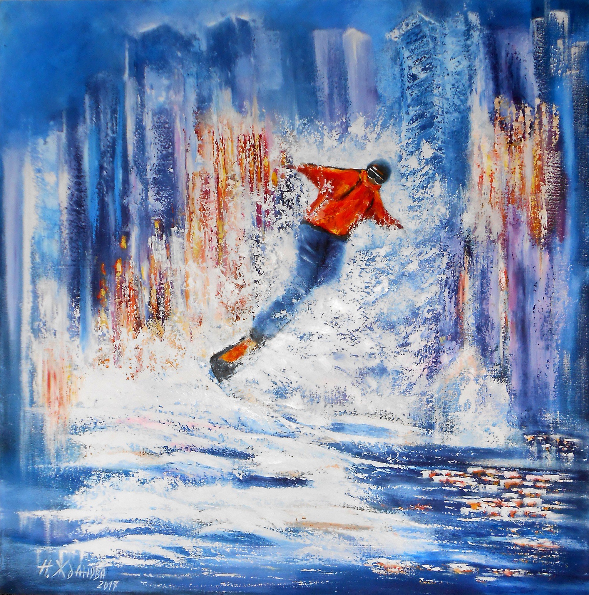 ![Сноуборд спорт живопись]()