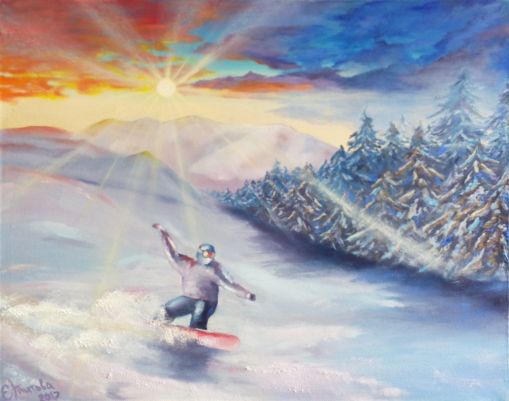 ![Зима живопись сноуборд]()