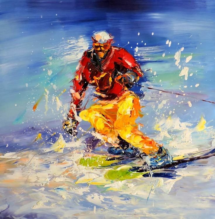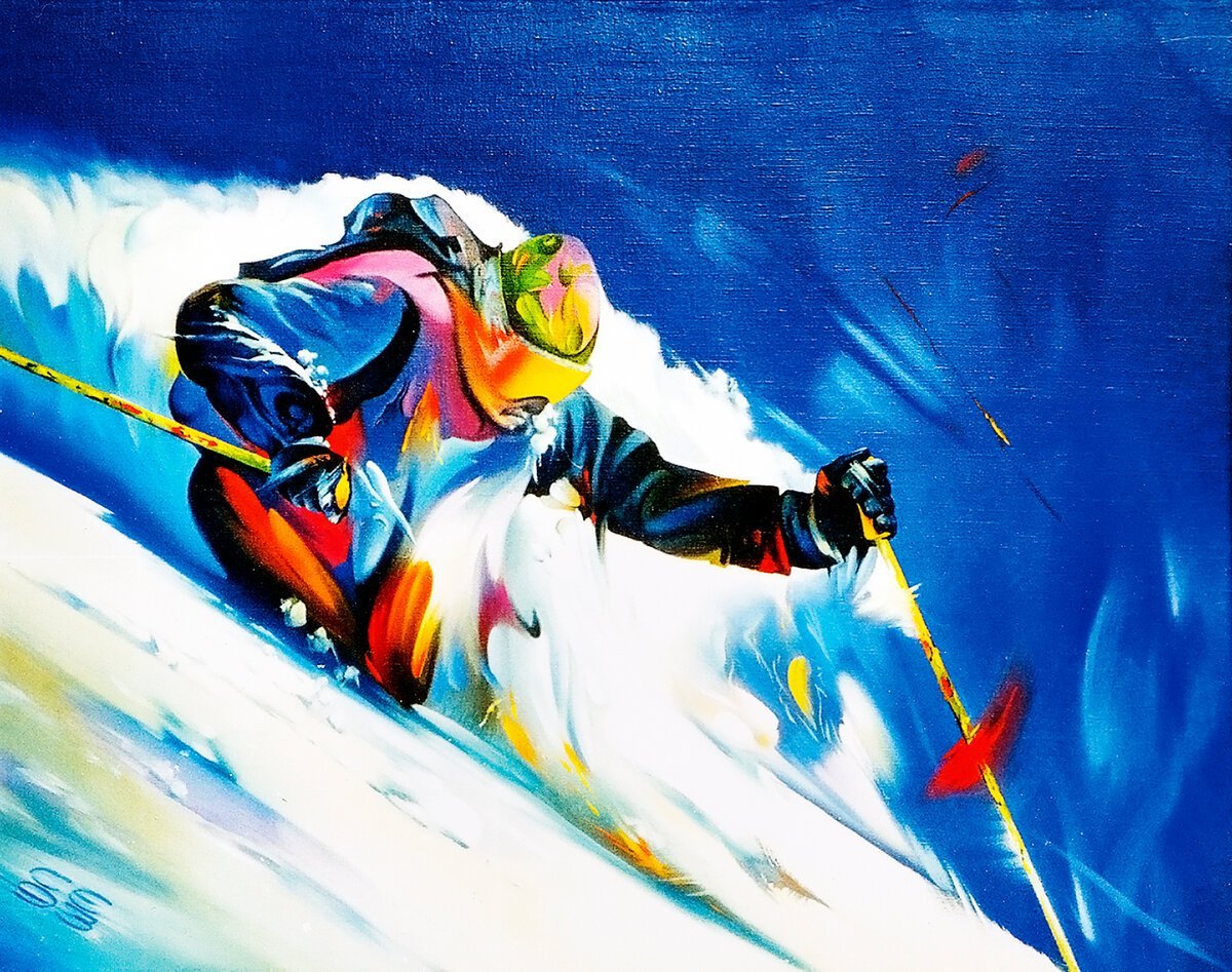 ![Горные лыжи живопись]()