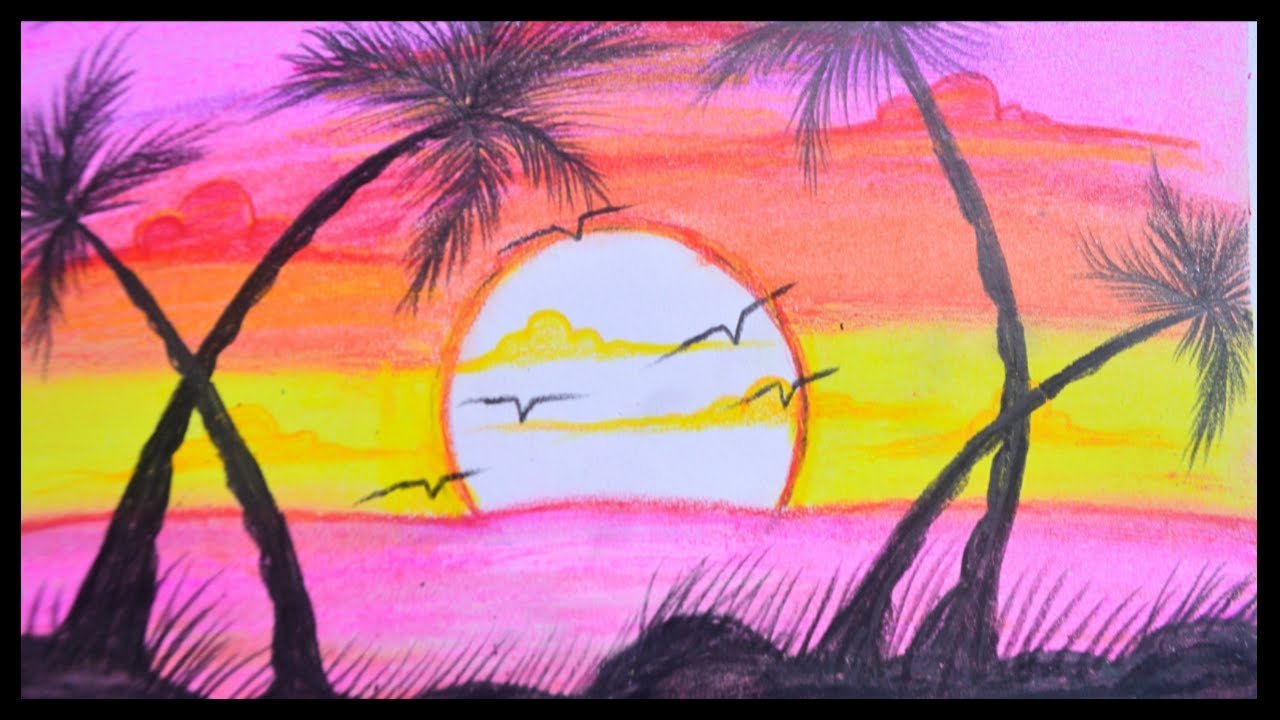 Закат восковыми мелками