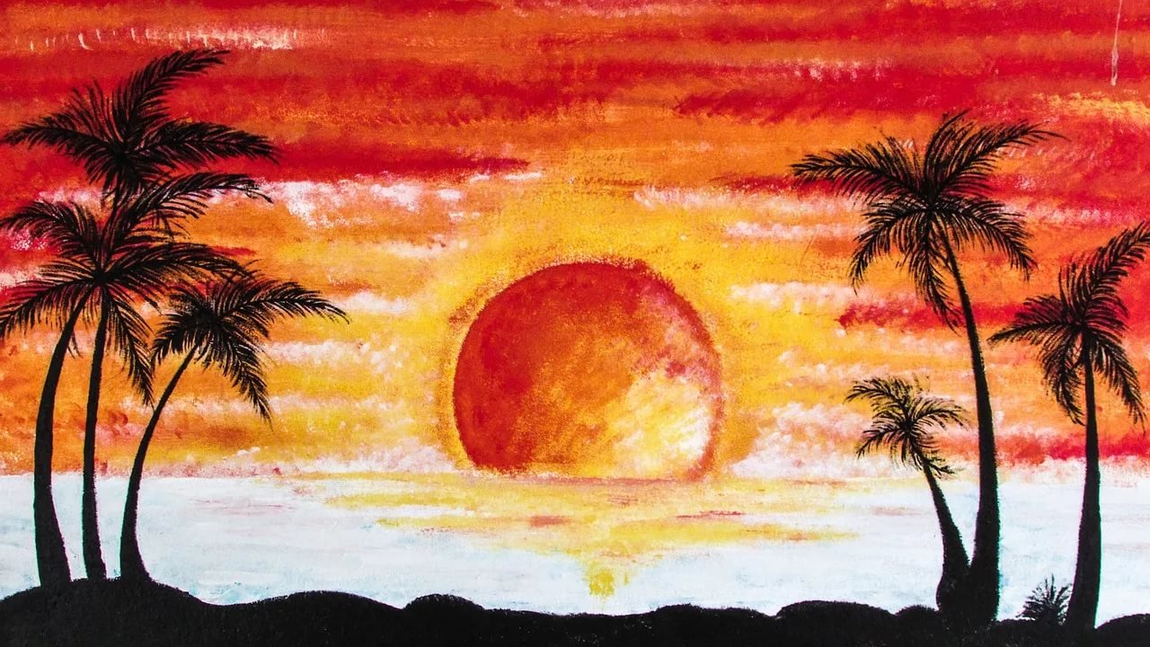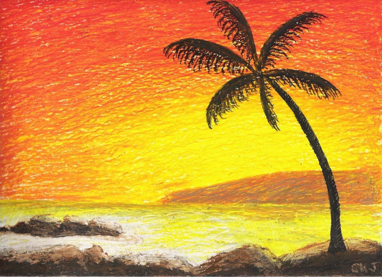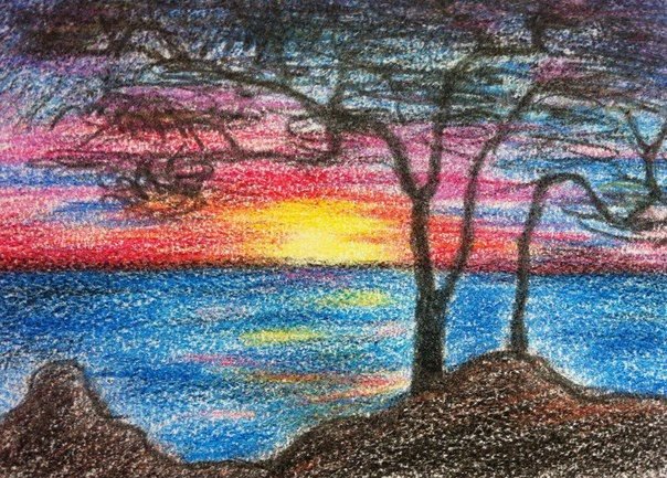 Закат масляными мелками