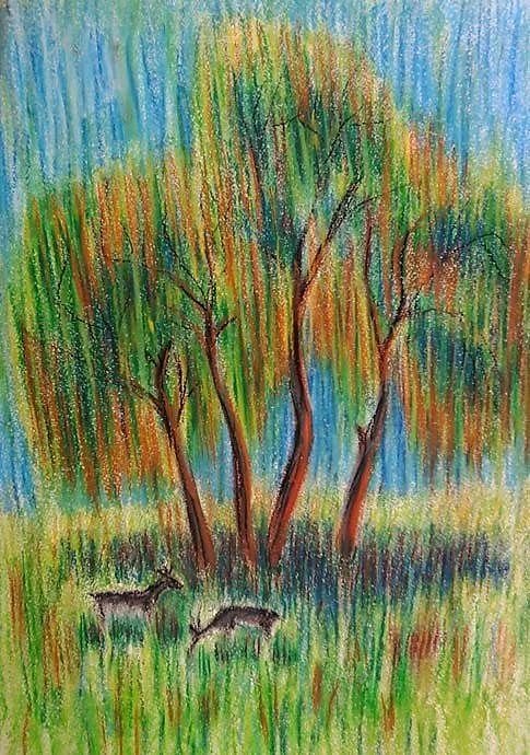 Пейзаж цветными мелками