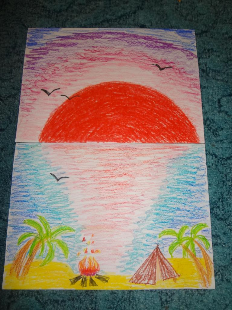 Рисование восковыми мелками закат