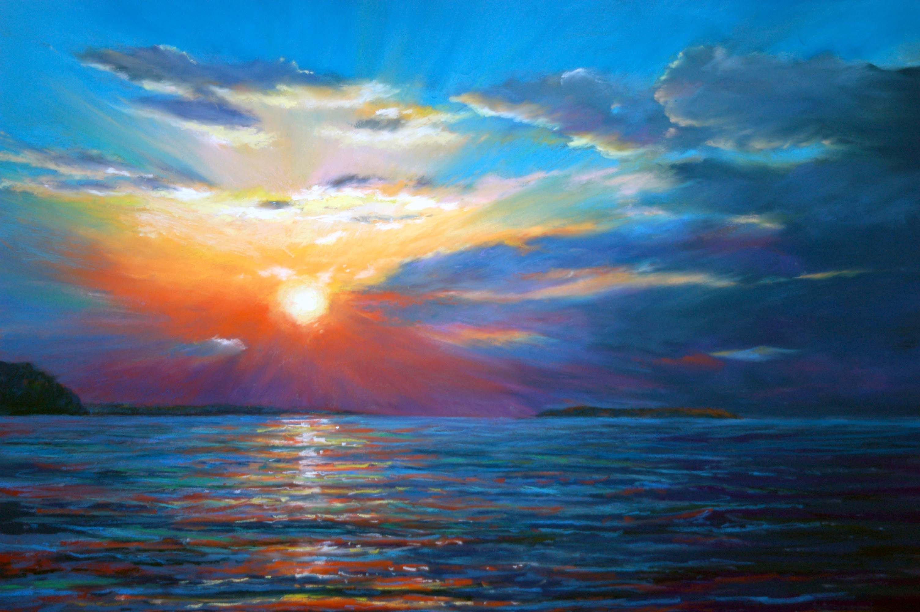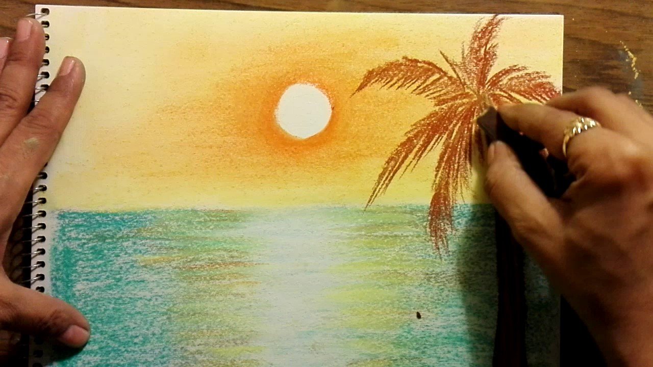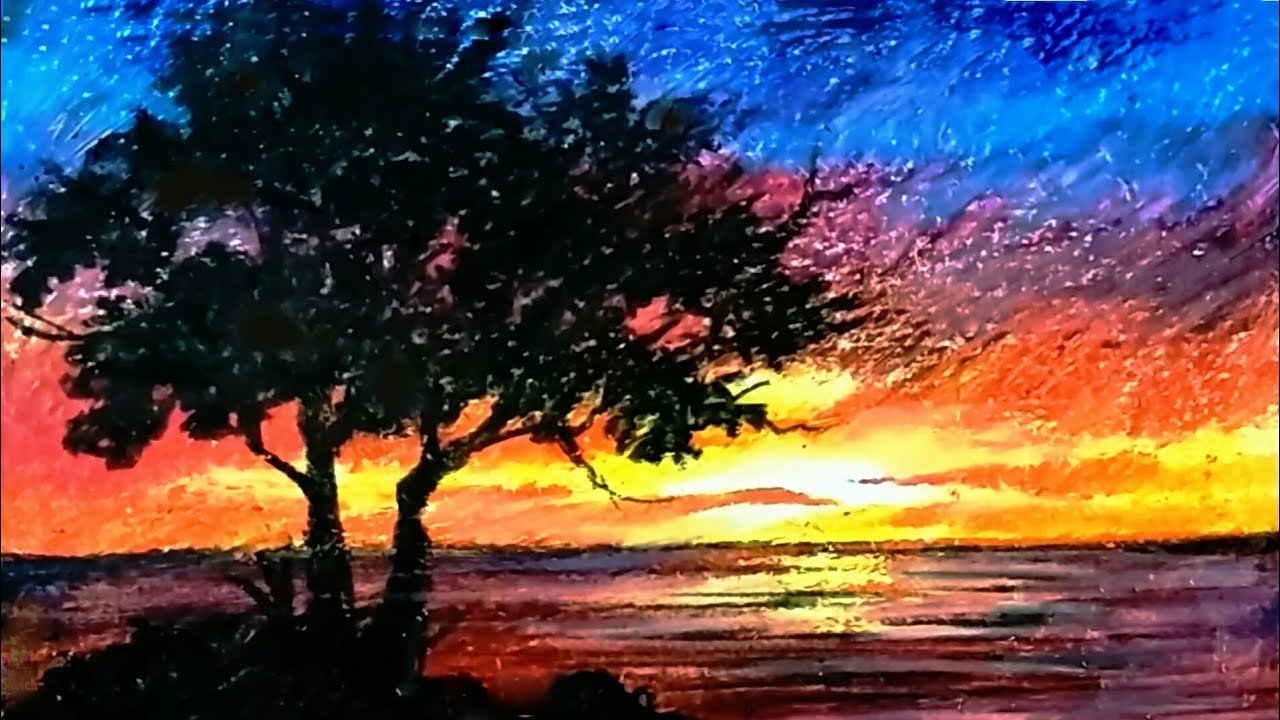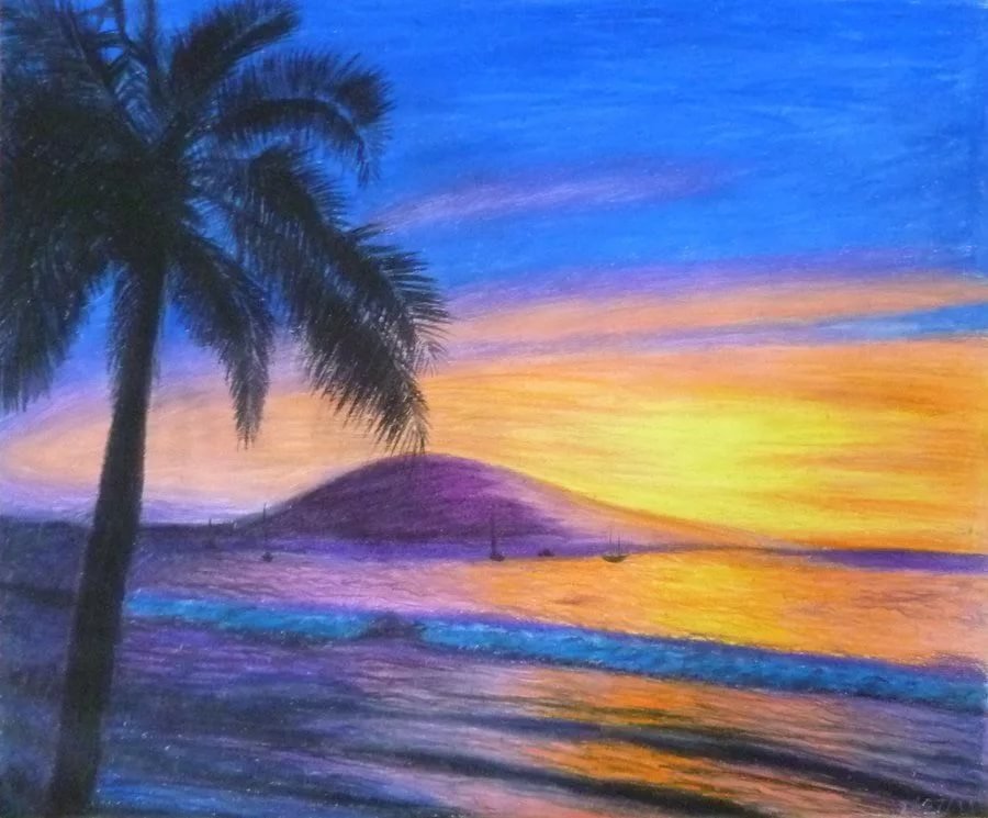 Рисунки масляной пастелью закат