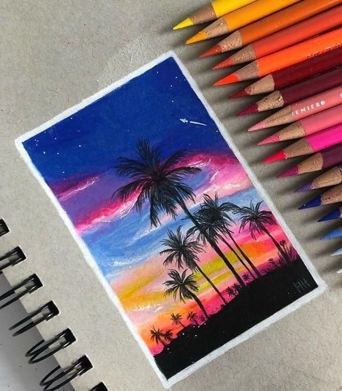 Закат карандашами цветными
