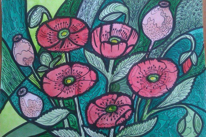Цветы акварель и фломастеры