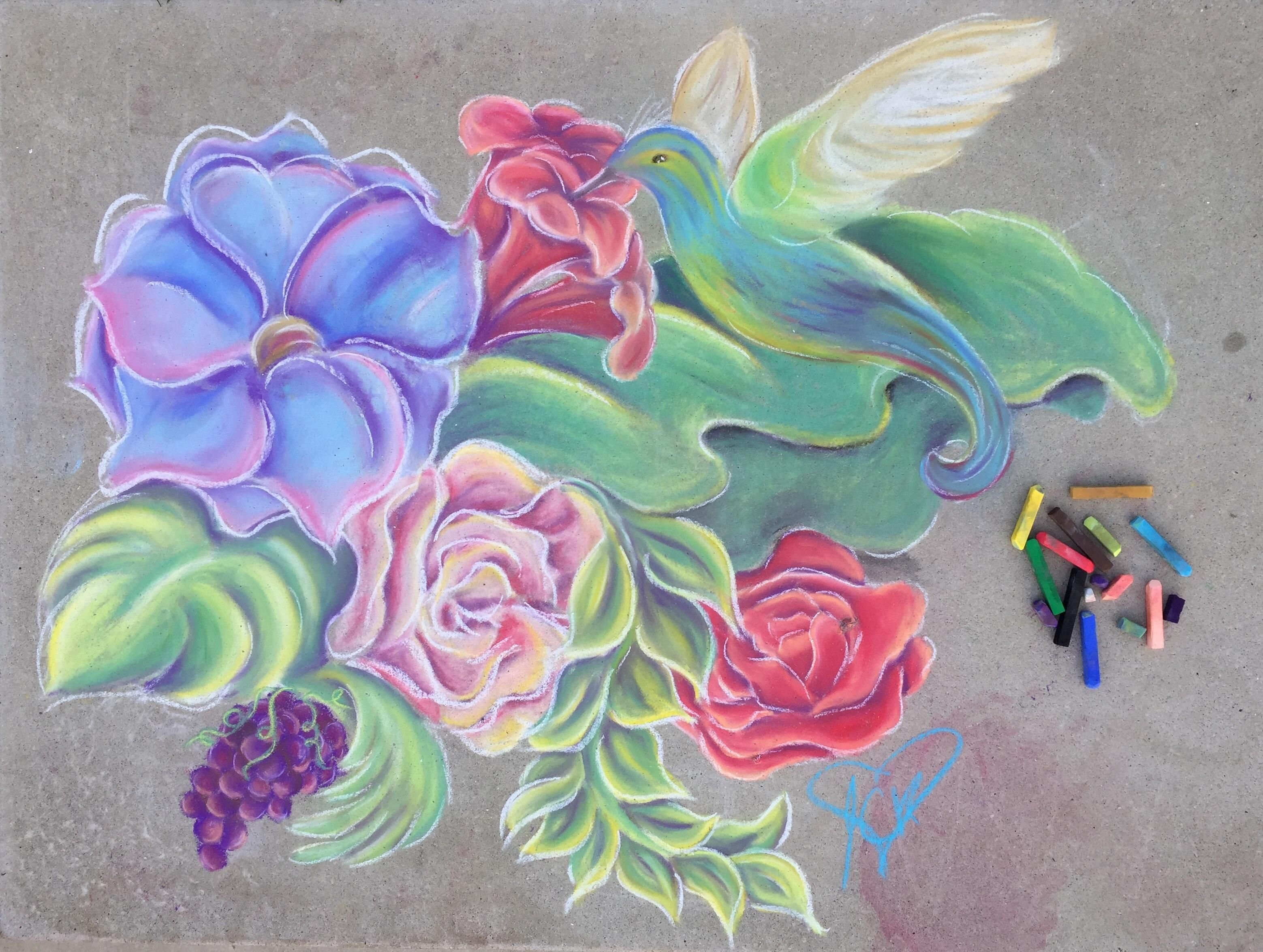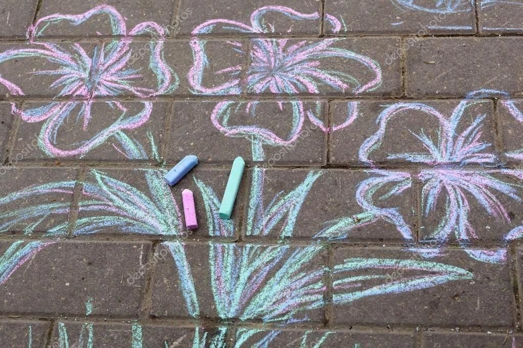 Рисование мелками на асфальте цветов