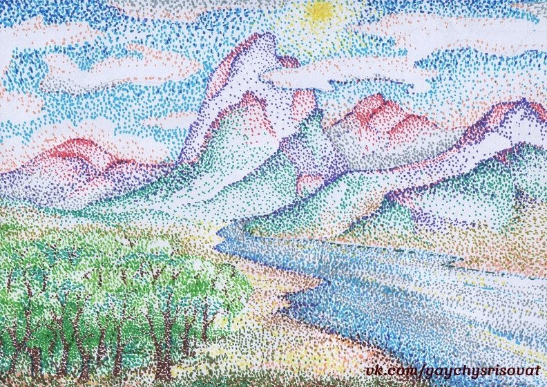 Техника пуантилизм горы