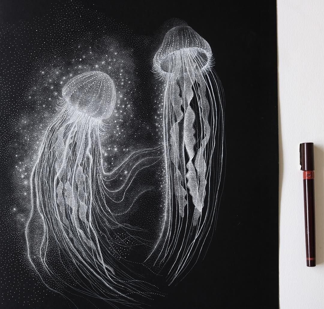 Граттаж медузы