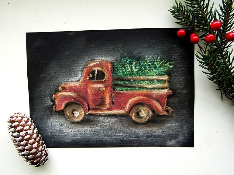 Новогодние картины пастелью