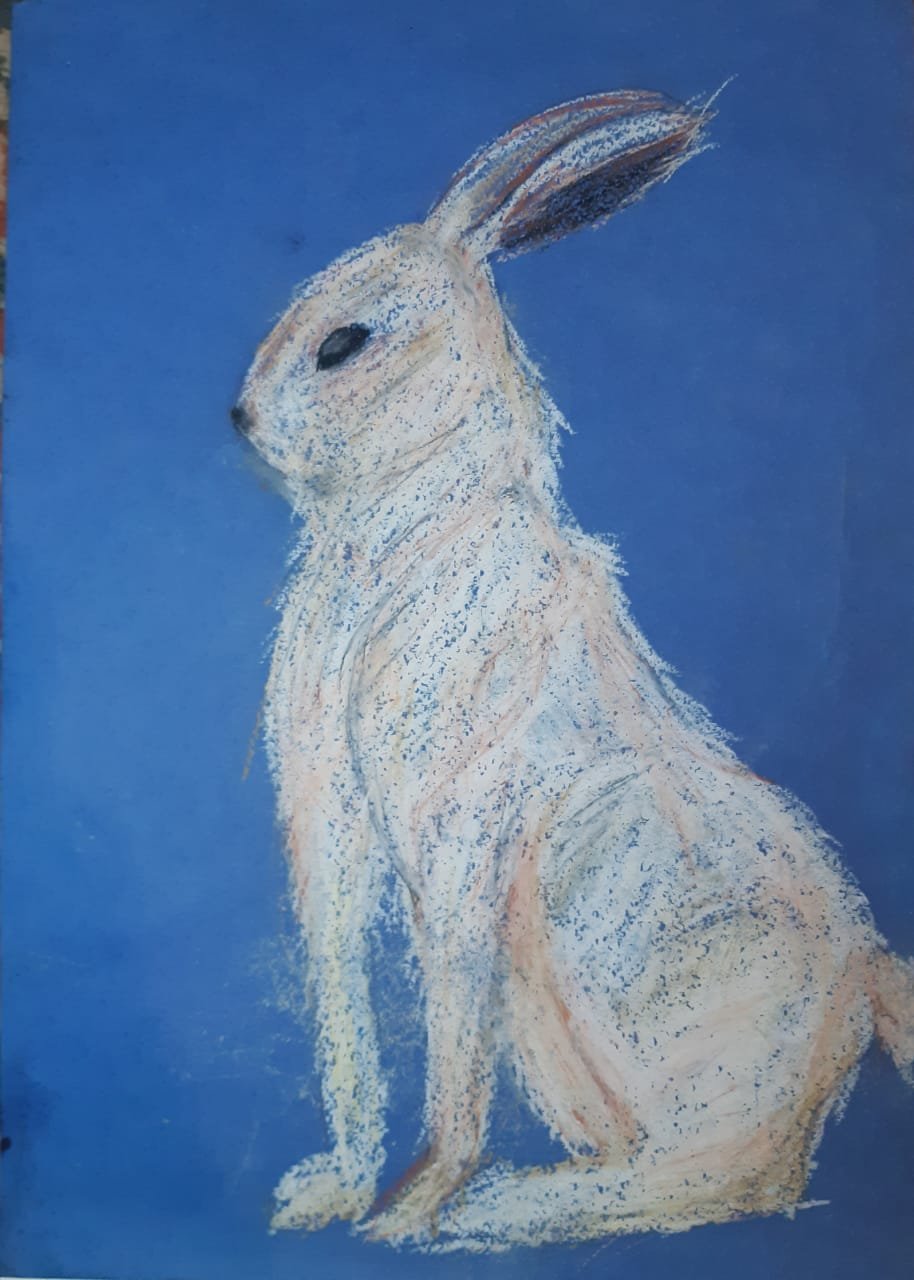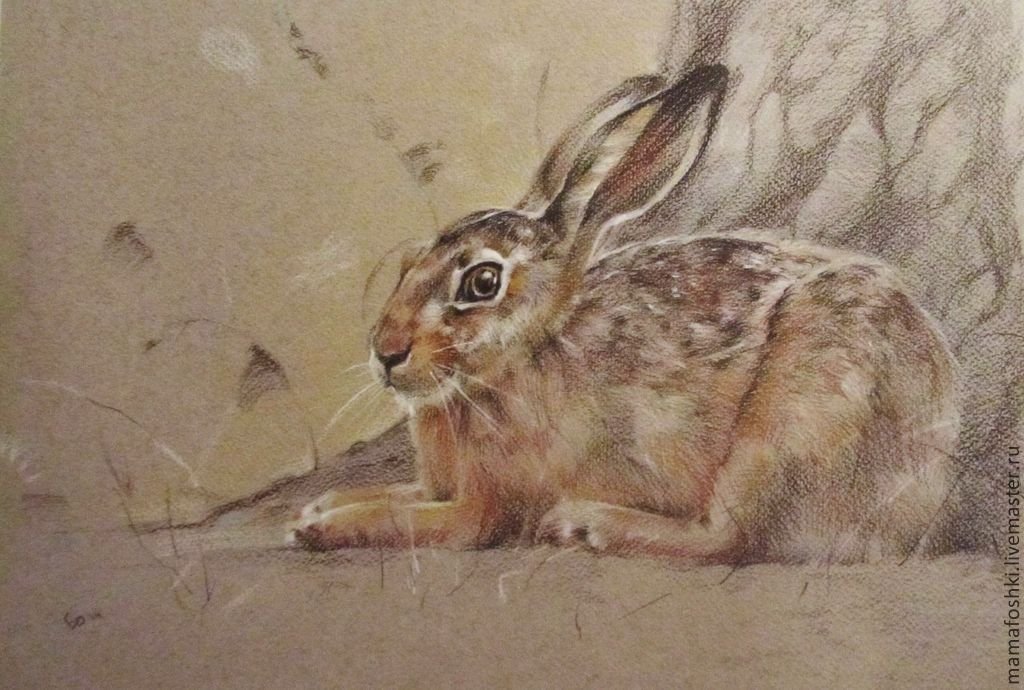 Заяц нарисованный пастелью