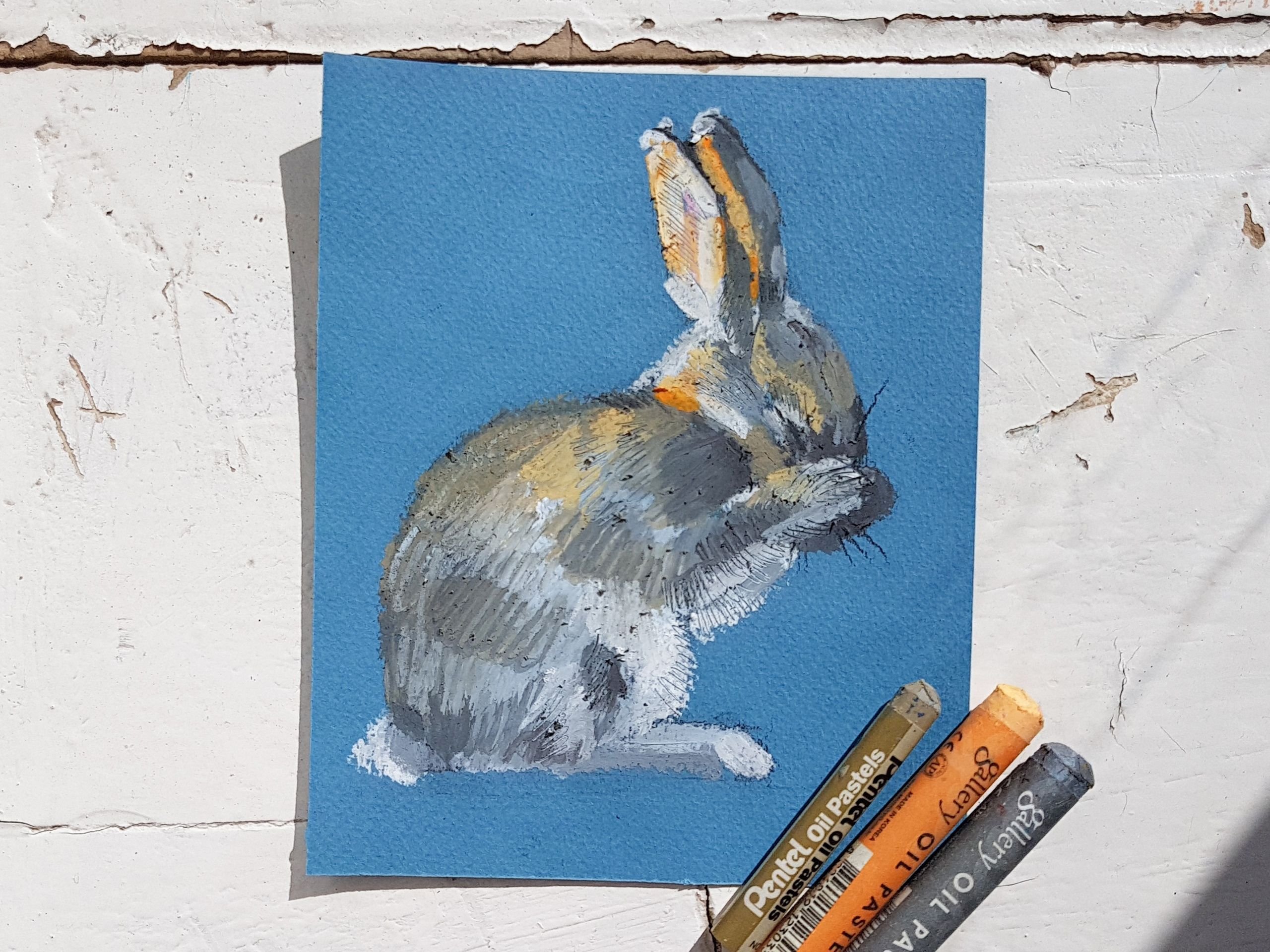 Кролик масляной пастелью