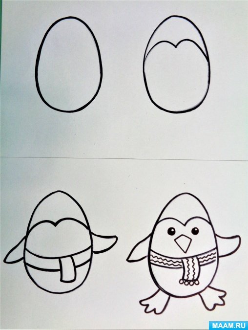 Рисование пингвина для детей