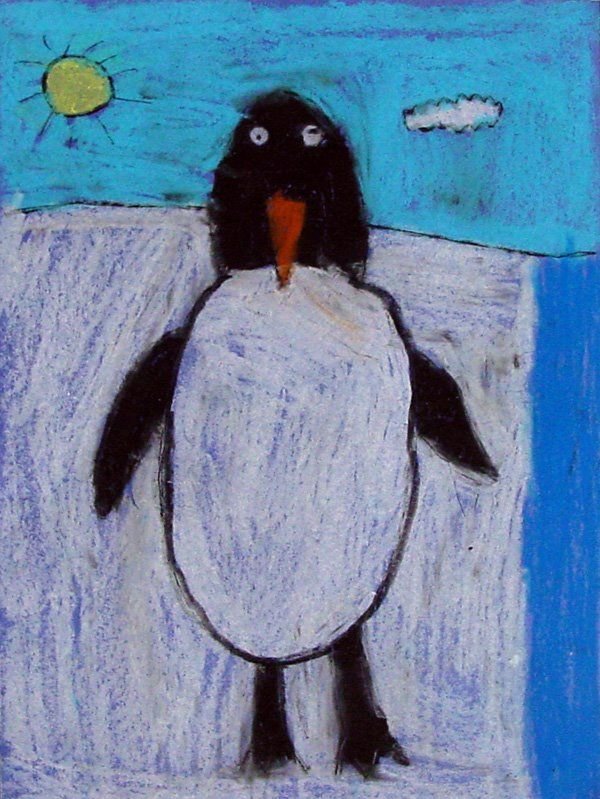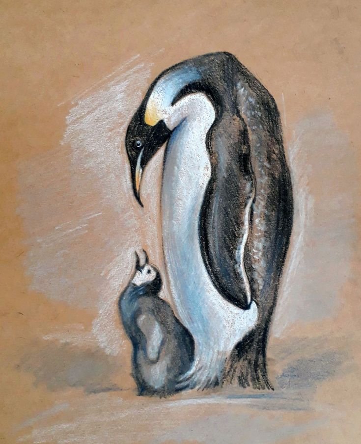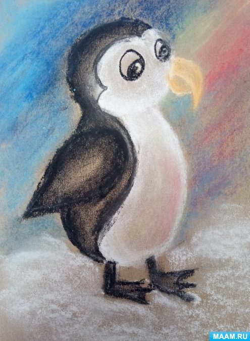 Рисование пастелью Пингвин