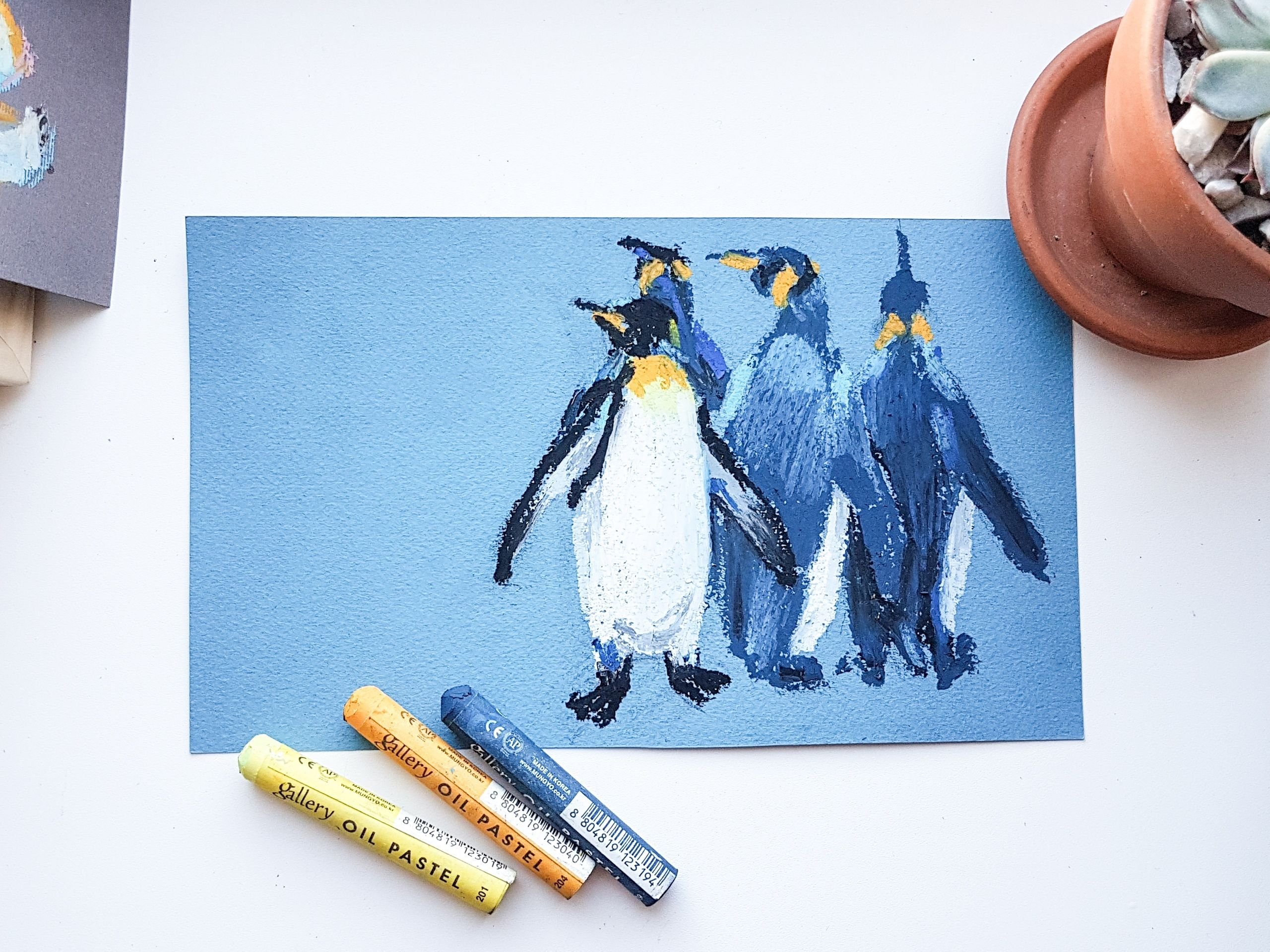 Пингвины пастельными мелками