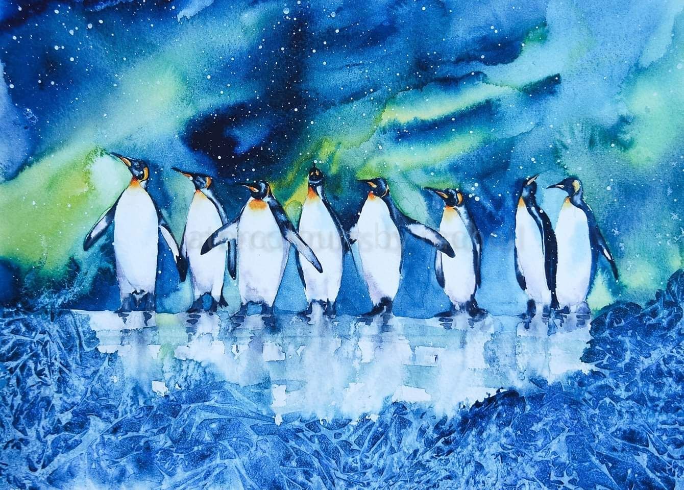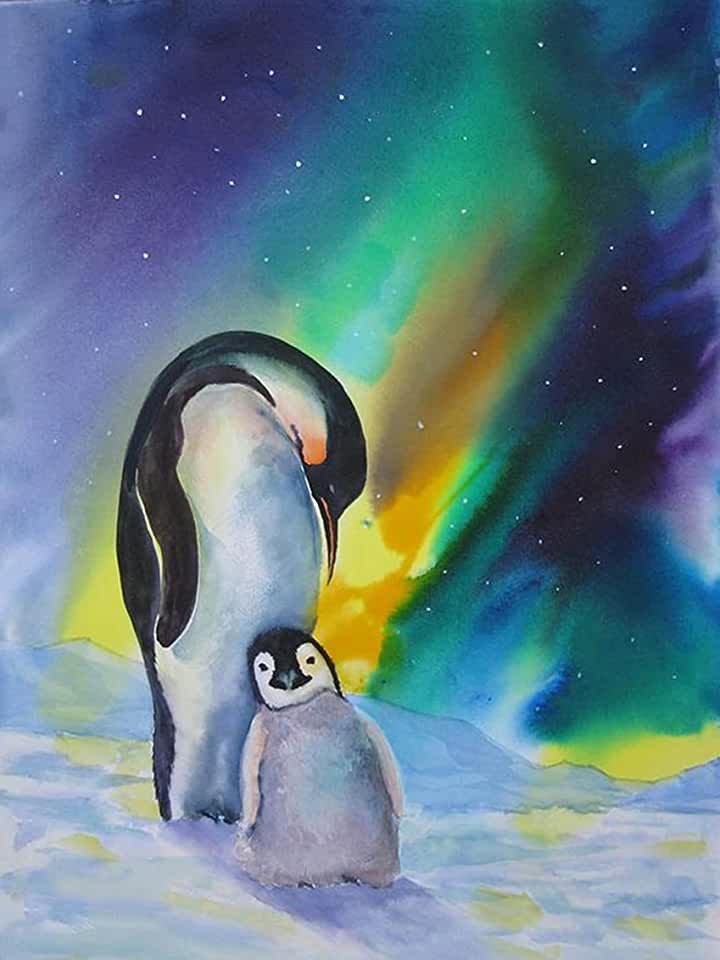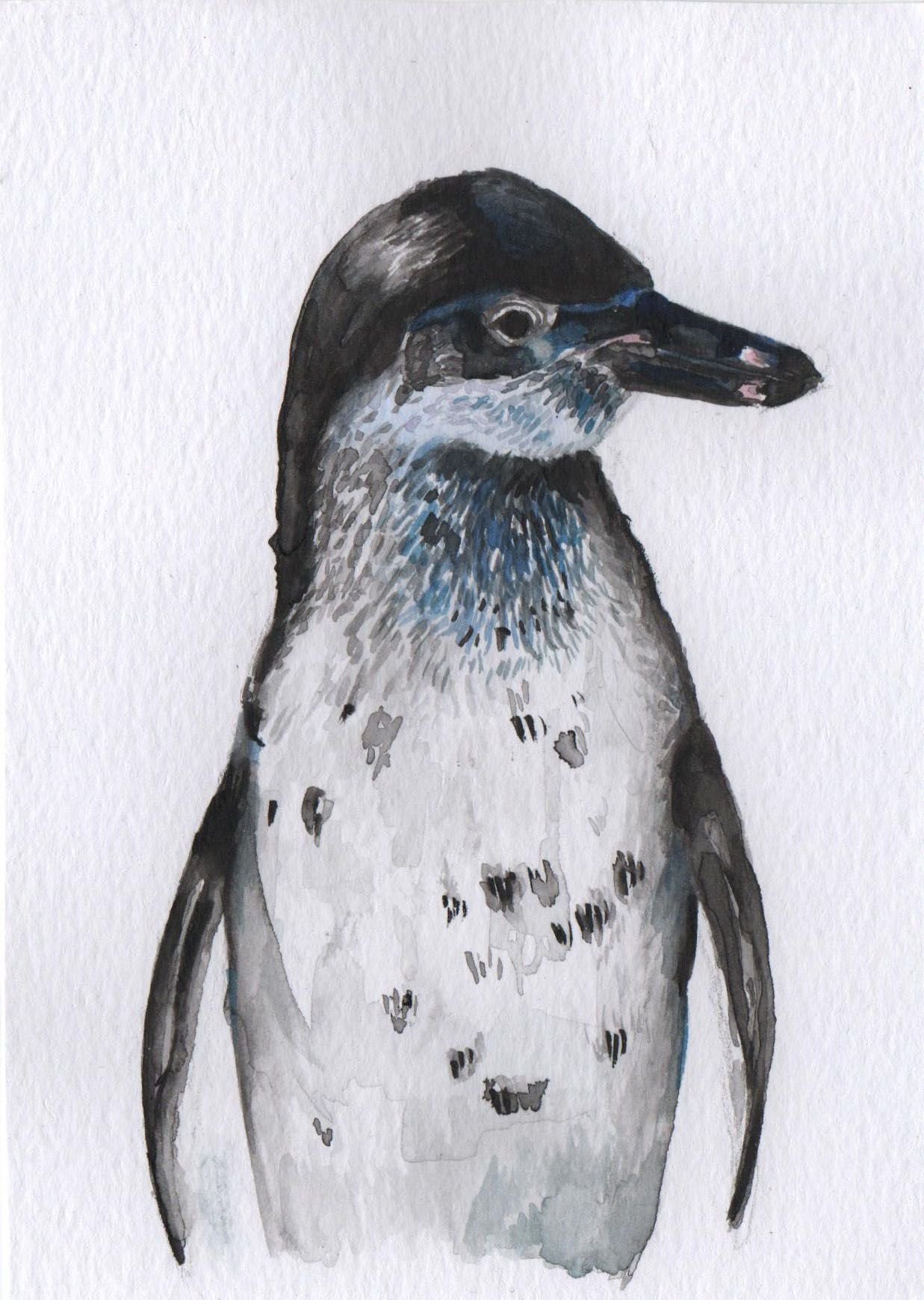 Пингвин акварелью